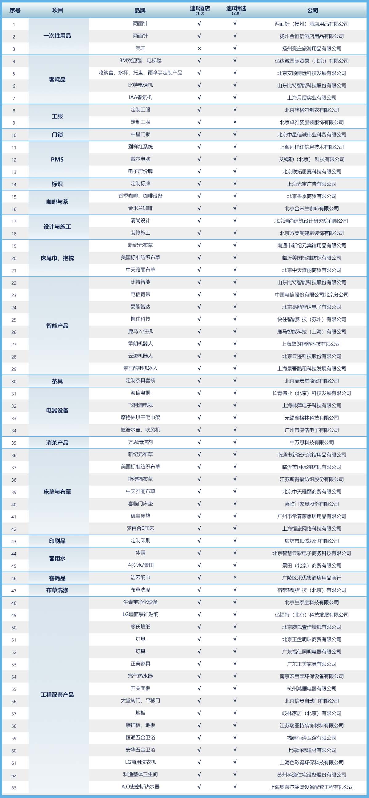 速8酒店品牌于2004年4月進入中國市場,發(fā)展至今,已在全國150多座城市擁有770多家已開業(yè)或即將開業(yè)的速8酒店。在速8(中國)高速發(fā)展的基礎上,我們需要更多的優(yōu)質(zhì)供應商加入我們,共同打造“干凈&友好”的高品質(zhì)經(jīng)濟型連鎖酒店。